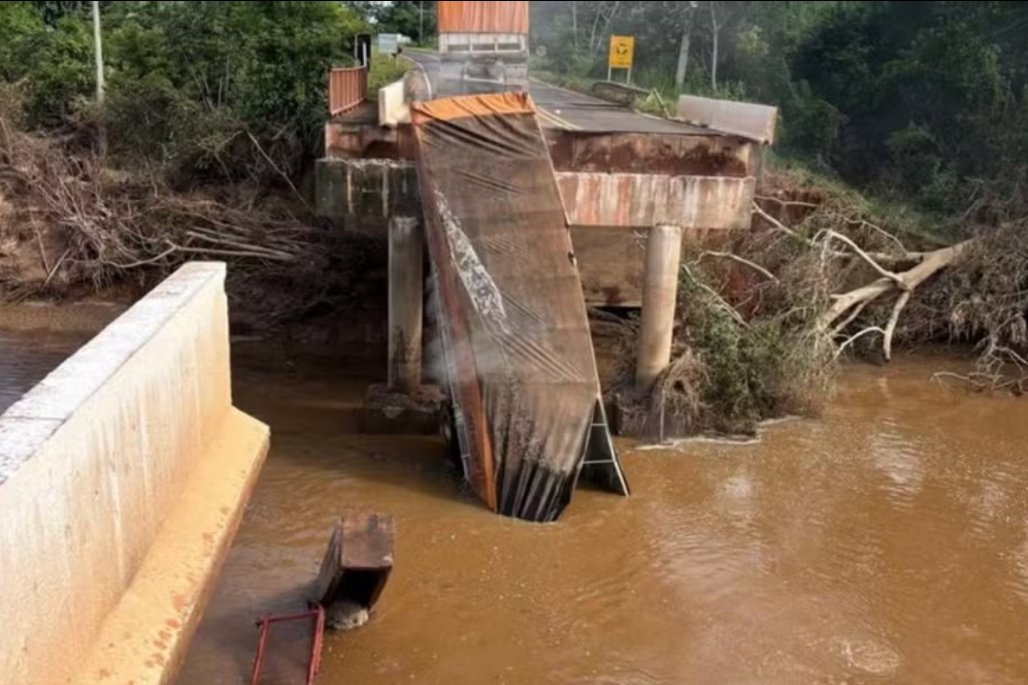 A estrutura cedeu recentemente e provocou acidente envolvendo um veículo de carga. De acordo com a indicação, a ponte desabou interrompendo o tráfego. A travessia é utilizada para acesso a propriedades rurais, deslocamento de trabalhadores e transporte de cargas. Com o problema estrutural, o fluxo ficou prejudicado, afetando diretamente quem depende da via no dia a dia.