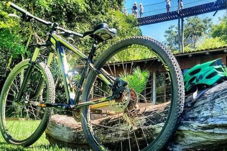 Felipe articula a instalação de placas para sinalizar passeios de bike em Bonito