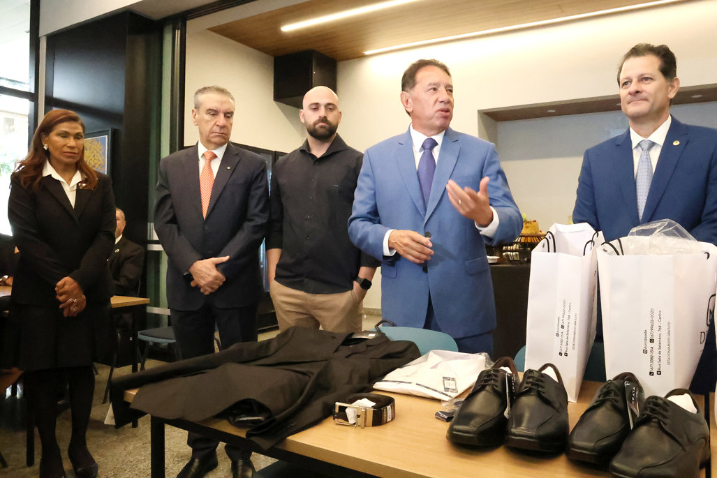 Presidente, vice-presidente e 1º secretário participaram da entrega de uniforme aos servidores da ALEMS