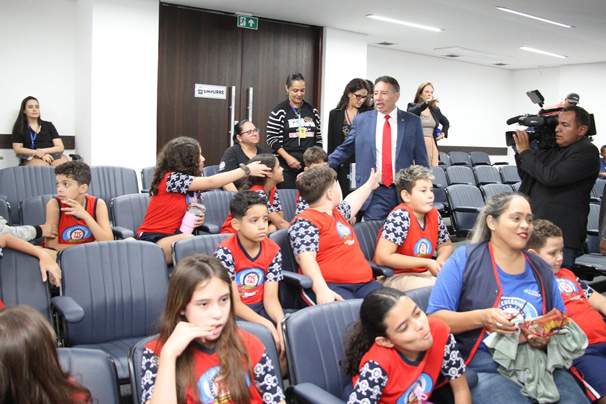 Alunos foram recebidos pelo presidente da ALEMS, deputado Gerson Claro